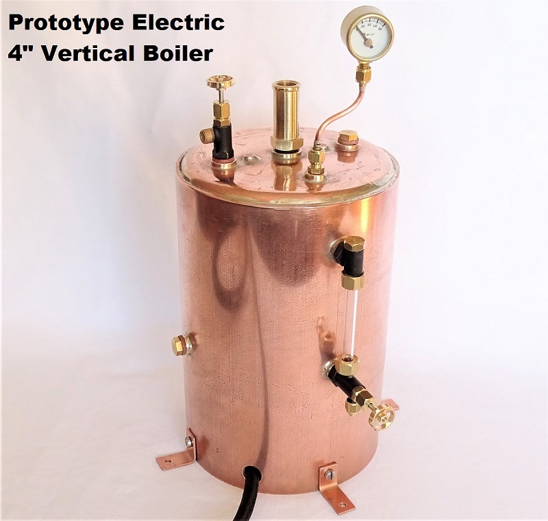 As well as our 3" Horizontal Electric Boiler we are also developing a 4" Vertical Mains Electric Model Live Steam Boiler to run our stationary engines.