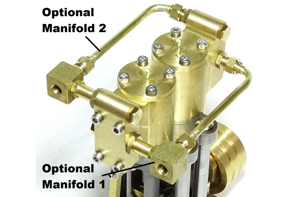 The engine will run in reverse by applying the steam (or air) input to the outlet ports. Our Reversing/Throttle Valve (optional extra) will control the direction and speed of the engine in either direction.