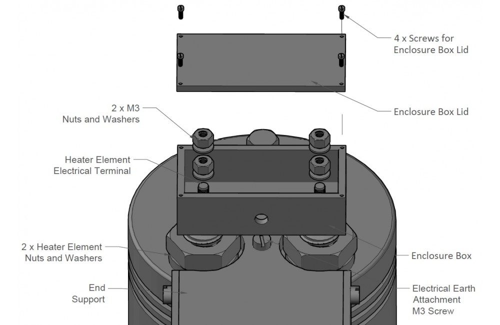 Each boiler cylinder has a simple design made of 3.5mm thick aluminium alloy, heated internally by an AC mains heating element - default 220/230v AC Heating Element (UK/Europe) , optional 110/120v AC (North America).